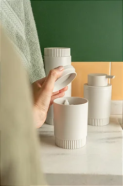 O porta algodão da linha Dórica também possui detalhes canelados na parte inferior, trazendo muita elegância e praticidade na hora de você se cuidar. Além disso, cumpre muito bem o seu objetivo de manter o algodão sempre à mão, garantindo uma rotina de cuidados prática e eficiente. Fabricado em material resistente PS.